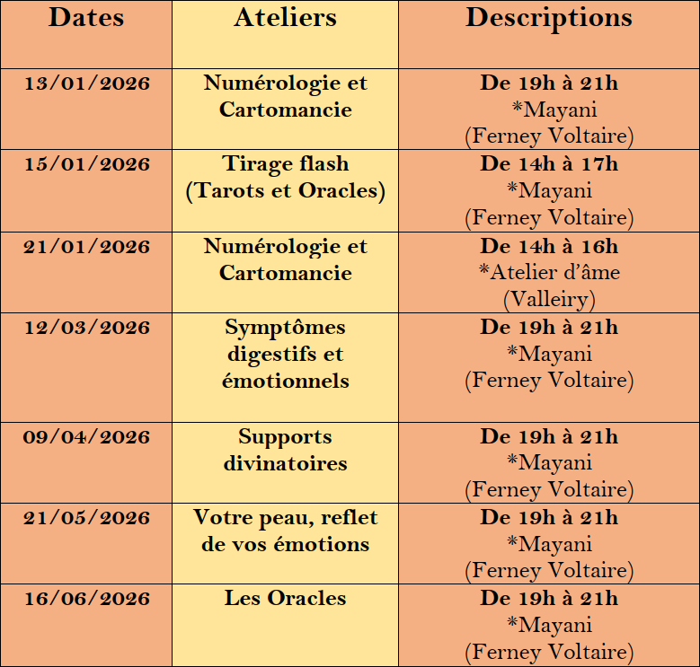| Calendrier des ateliers à venir: |